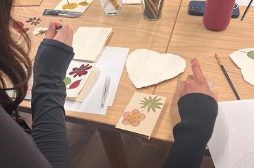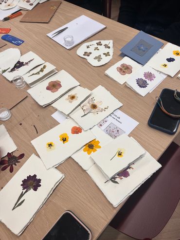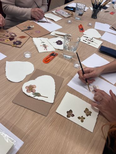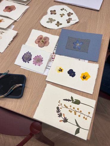 We press fresh flowers and make beautiful floral cards on handmade paper with pre-pressed flowers from our pressed floral collection in a range of colours - a floral buffet! Everyone goes home with their press full of flowers and lots of cards they have made.